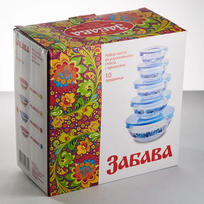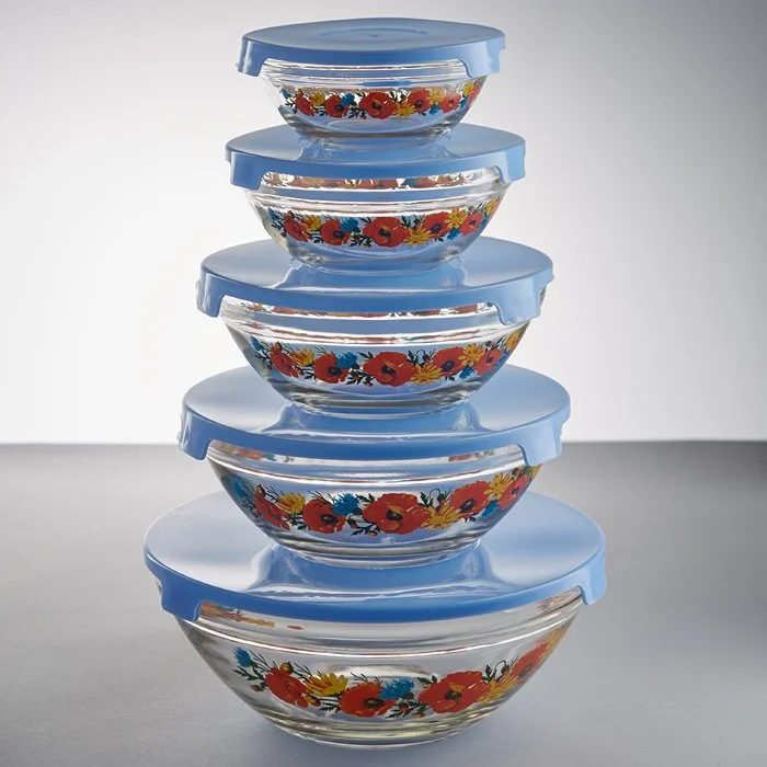 - Набор из 5 круглых мисок из упрочненного стекла с декоративным рисунком
