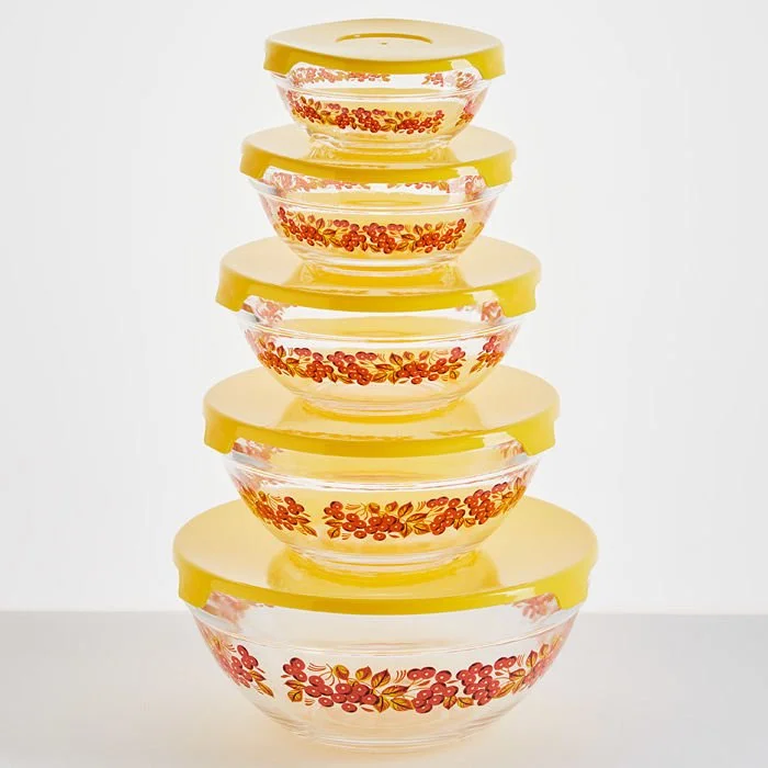 • Набор из 5 круглых мисок из упрочненного стекла с декоративным рисунком