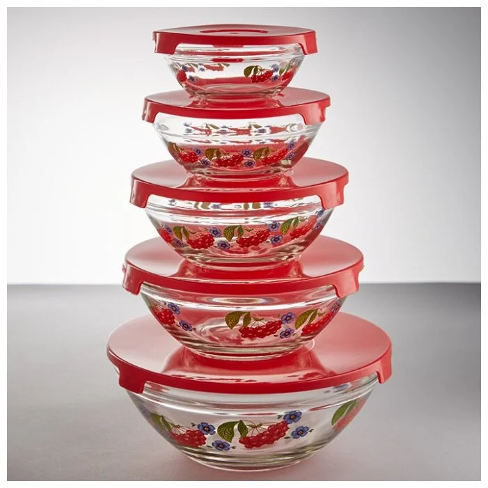 - Набор из 5 круглых мисок из упрочненного стекла с декоративным рисунком