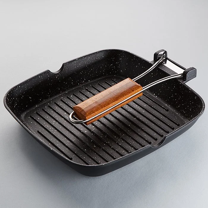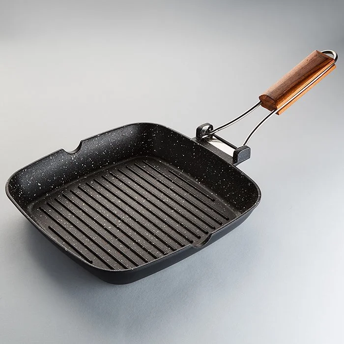 - Сковорода-гриль из литого алюминия с антипригарным покрытием с мраморной крошкой серии ЯШМА
