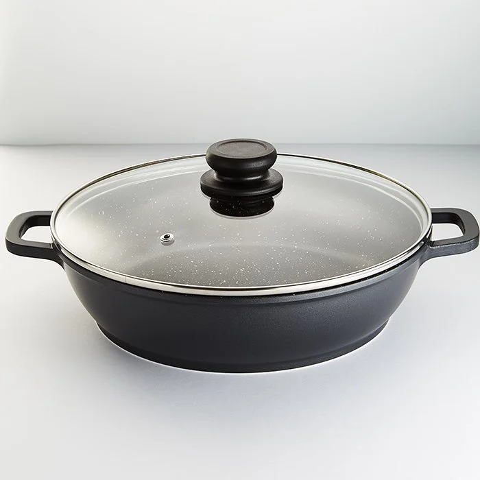 - Сотейник из литого алюминия с антипригарным покрытием с мраморной крошкой серии ЯШМА