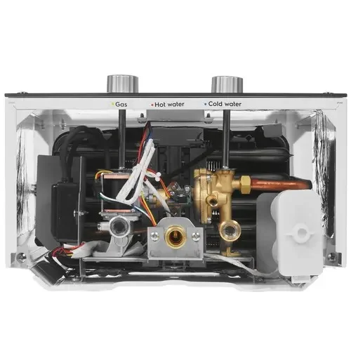 Водонагреватель газовый Zanussi GWH 10 Fonte Glass Mirror - проточная модель, благодаря которой горячая вода будет присутствовать в доме в неограниченных объемах. Модель получила функцию защиты от перегрева, срабатывающую автоматически для предотвращения внезапной поломки. В данном устройстве реализована система газ-контроля, благодаря которой при внезапном угасании пламени подача газа сразу же прекращается для безопасной эксплуатации техники. Механические переключатели на корпусе прибора позволят установить наиболее предпочтительный уровень мощности и подобрать температурный режим нагрева воды.