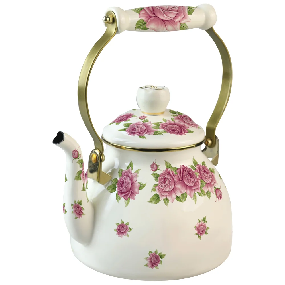 Эмалированный чайник, объем - 2,6 л, эмалированная сталь, комбинированная ручка, "под золото", внутреннее эмалированное покрытие, ручка на крышке с декором, наружное покрытие - эмаль с рисунком. Подходит для индукции. Подарочная упаковка.