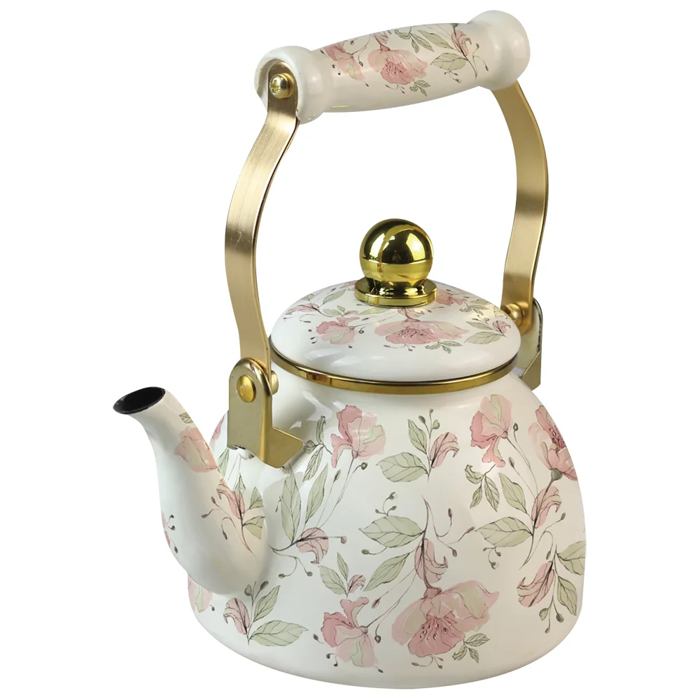 Эмалированный чайник, объем - 1,3 л, эмалированная сталь, съемный фильтр из нержавеющей стали, комбинированная ручка, "под золото", внутреннее эмалированное покрытие, ручка на крышке с декором, наружное покрытие - эмаль с рисунком. Подходит для индукции. Подарочная упаковка.