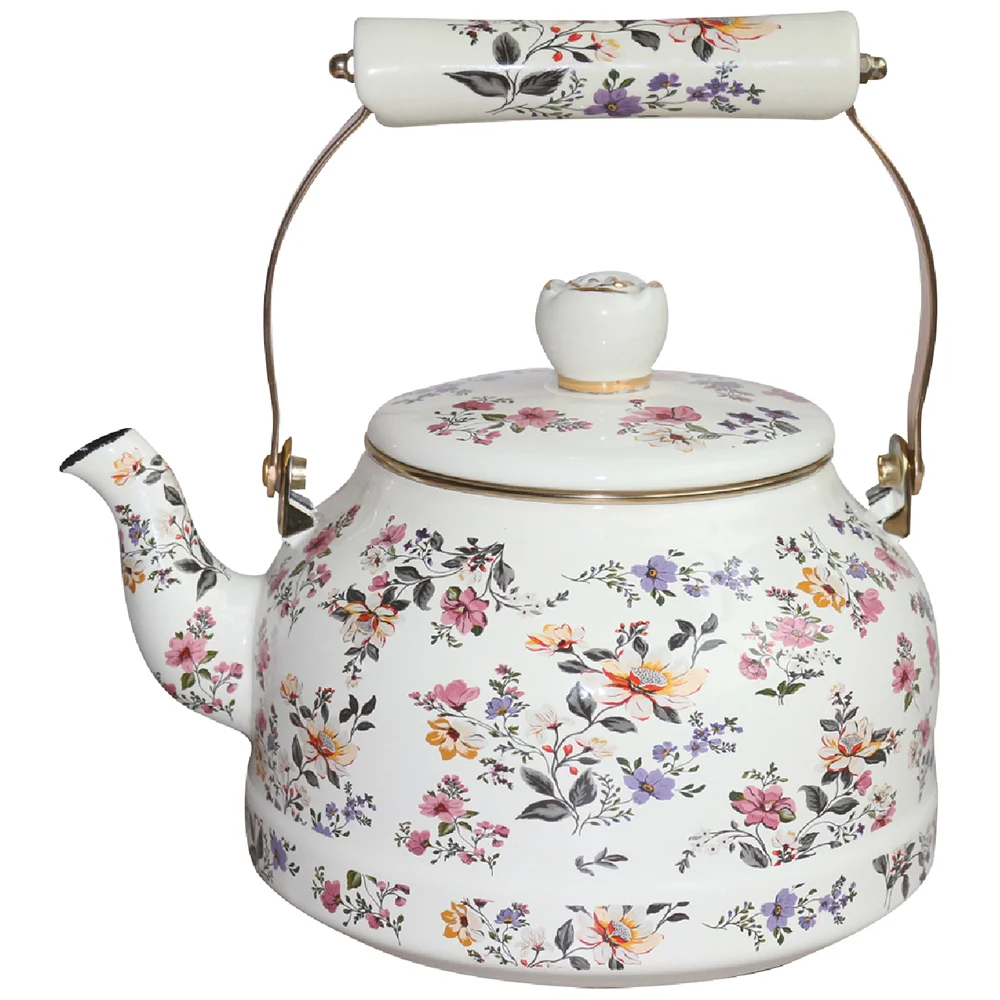 Эмалированный чайник 2,7 л, эмалированная сталь, комбинированная ручка, "под золото", внутреннее эмалированное покрытие, ручка на крышке с декором, наружное покрытие - эмаль с рисунком. Подходит для индукции.