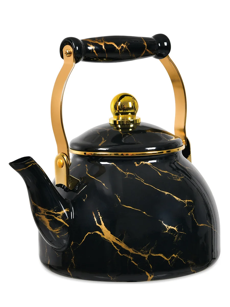 Чайник ZEIDAN Z-4537 объемом 2,8 литра — это стильный и практичный кухонный аксессуар, идеально подходящий для больших семейных обедов и дружеских встреч. Он выполнен из высококачественной эмалированной стали, которая обеспечивает долговечность и легкое обслуживание. Внешнее покрытие чайника выполнено в популярном стиле "Black marble" с элегантным рисунком, что придает изделию современный и изысканный внешний вид. Внутреннее эмалированное покрытие способствует равномерному нагреву воды и защищает от образования накипи, что облегчает уход за прибором. Объем 2,8 литра позволяет быстро и удобно заваривать большие порции чая или кипятить воду для различных нужд. Комбинированная ручка с эффектом "под золото" обеспечивает комфорт при использовании и добавляет изысканности внешнему виду. Чайник совместим с индукционными плитами, что делает его универсальным и удобным в использовании. Наружное покрытие с рисунком не только украшает изделие, но и защищает его от повреждений. Надежность, стиль и функциональность делают этот чайник отличным выбором для современной кухни.