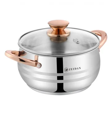 Кастрюля ZEIDAN Z-501070 3,6 л со стеклянной крышкой, нержавеющая сталь, 3-x СЛОЙНОЕ КАПСУЛИРОВАННОЕ ИНДУКЦИОННОЕ ДНО, крышка - стекло, ручки на корпусе и крышке "ПОД ЗОЛОТО", комбинированная полировка снаружи, матовая полировка внутри. Подарочная упаковка.