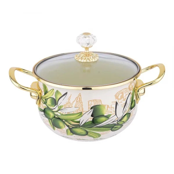 Кастрюля с крышкой 6,5 л (Ø24 см) с внутренним и внешним трехслойным эмалированным покрытием, материал - углеродистая сталь