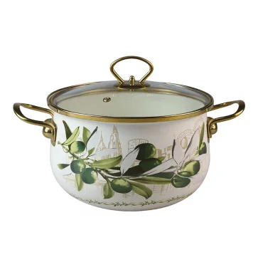 Кастрюля с крышкой 2,4 л (d18 см) с внутренним и внешним трехслойным эмалированным покрытием, материал - углеродистая сталь. Ручки на корпусе и крышке "под золото". Подходит для индукции. Подарочная упаковка.