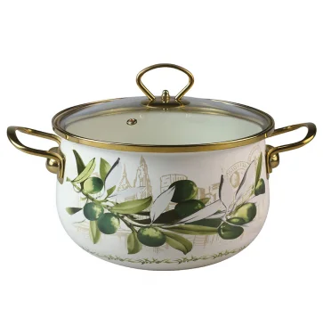Кастрюля с крышкой 4,4 л (d22 см) с внутренним и внешним трехслойным эмалированным покрытием, материал - углеродистая сталь. Ручки на корпусе и крышке "под золото". Подходит для индукции. Подарочная упаковка.