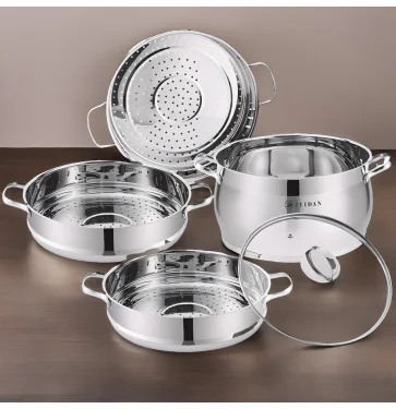 Мантоварка, 5 предметов, d28 см – 10,0 л, 3-х ЯРУСНАЯ, нержавеющая сталь, 3-x СЛОЙНОЕ КАПСУЛИРОВАННОЕ ИНДУКЦИОННОЕ ДНО, крышка стекло, съемные секции из нержавеющей стали, комбинированная полировка снаружи, зеркальная полировка внутри. Подарочная упаковка.