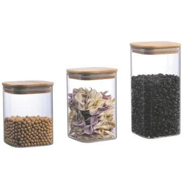 Набор банок для хранения, 3 предмета (900 мл, 1100 мл, 1600 мл), корпус из высококачественного боросиликатного стекла, крышка - бамбук, подарочная упаковка.