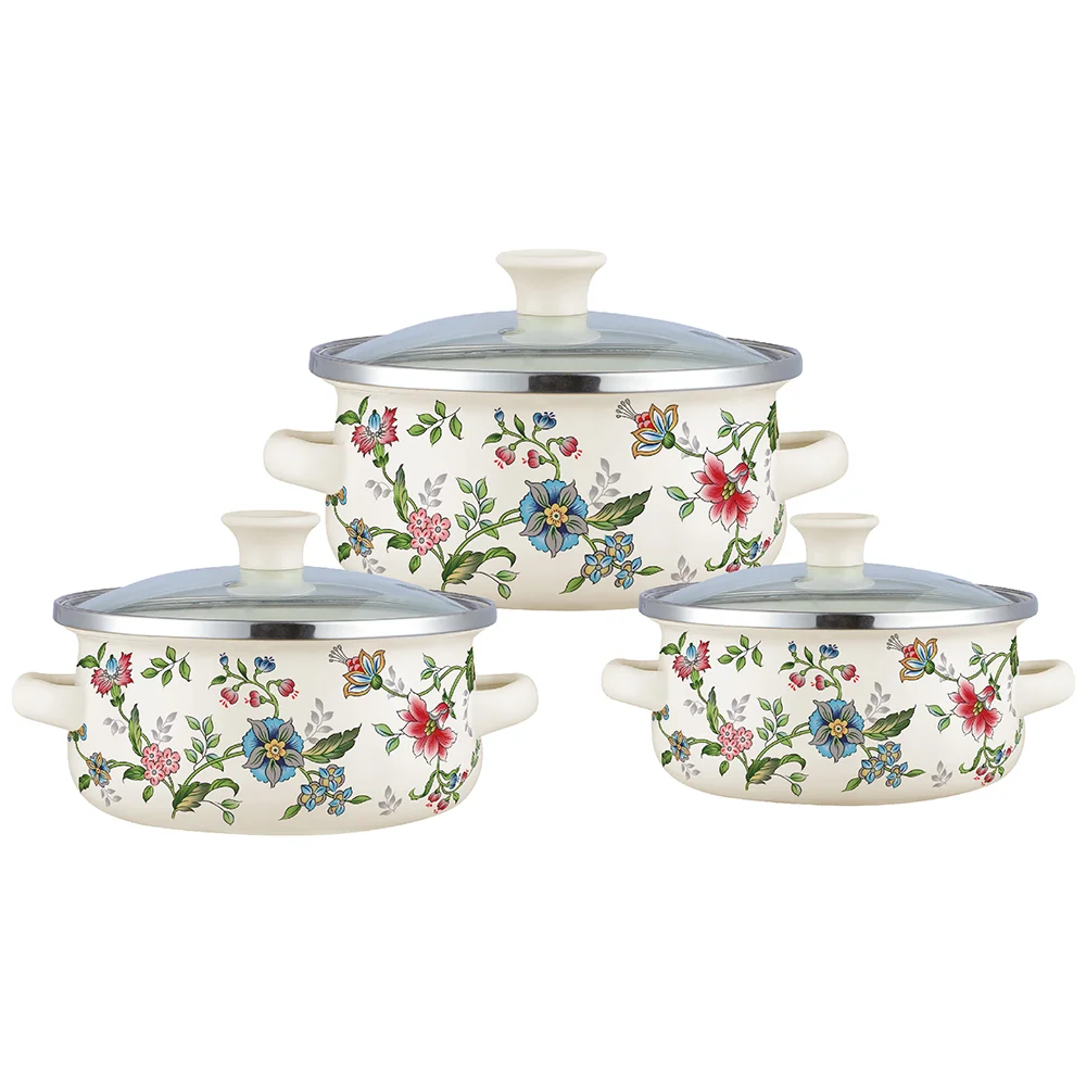 Набор мини-кастрюль, 6 предм. (3 КАСТРЮЛИ С КРЫШКАМИ: 0,5 Л (d12 см), 0.8 Л (d14 см), 1,2 Л (d16 см) с внутренним эмалированным покрытием), эмалированная сталь, внешнее покрытие - эмаль с рисунком. Подходит для индукции. Подарочная упаковка.