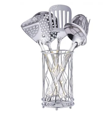 Кухонный набор из 7 предметов: лопатка с прорезями, шумовка, половник, картофелемялка, поварская ложка, поварская вилка. Изготовлен из высококачественной нержавеющей стали, которая чрезвычайно устойчива к коррозии, воздействию разного рода кислот и щелочей (не окисляется).