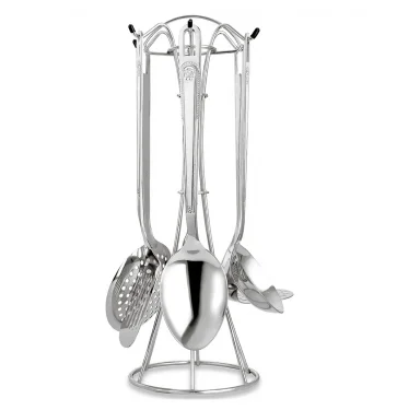 Кухонный набор 7пр. НЕРЖАВЕЮЩАЯ СТАЛЬ, металлическая подставка-туба, зеркальная полировка с рисунком (лопатка с прорезями, шумовка, половник, картофелемялка, поварская ложка, поварская вилка ). Подарочная упаковка.
