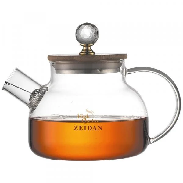 Zeidan Z-4472 Чайник заварочный, 1000 мл, корпус из термостойкого боросиликатного стекла, крышка - бамбук с декоративной ручкой "кристалл".
