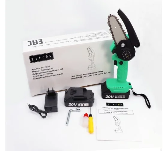 Цепная аккумуляторная пила Zitrek GreenSaw 20 В, 2 АКБ 1.5 А*ч, ЗУ 082-1850 незаменима при работе в мастерской или в саду для распиливания различных материалов.