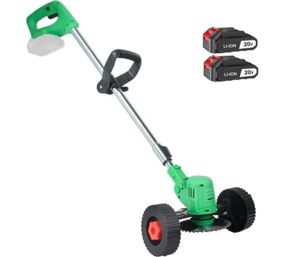 Аккумуляторный триммер-газонокосилка Zitrek GreenCut 20 Pro 20 В, Li-ion аккумулятор 2 шт, колеса 082-2005 удобен для скашивания травы в труднодоступных местах, вдоль заборов, клумб, подравнивания газонов, краев садовых дорожек.