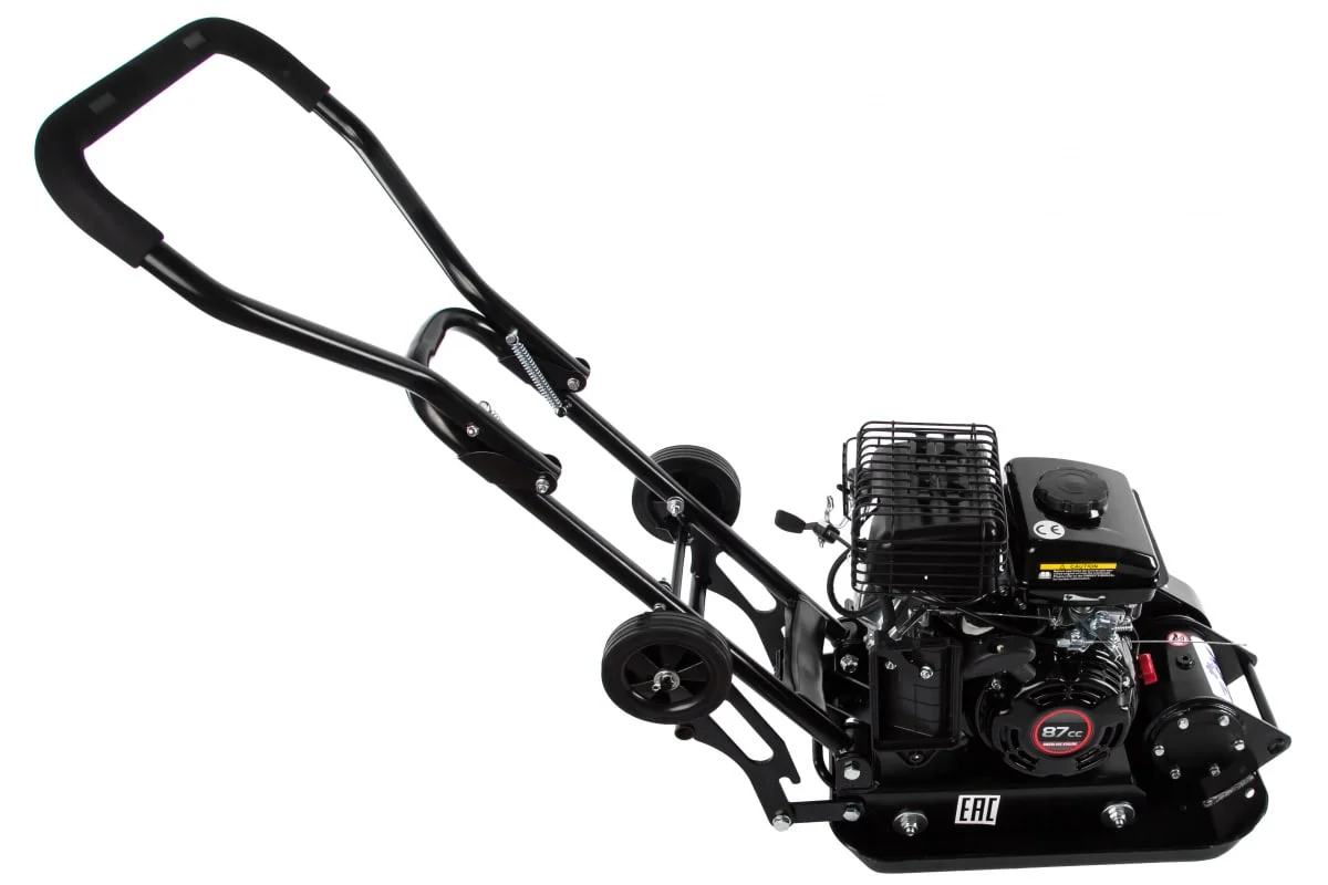 Высокая мобильность за счет наличия возможности складывания ручки управления, а так же транспортировочной скобs и колес.