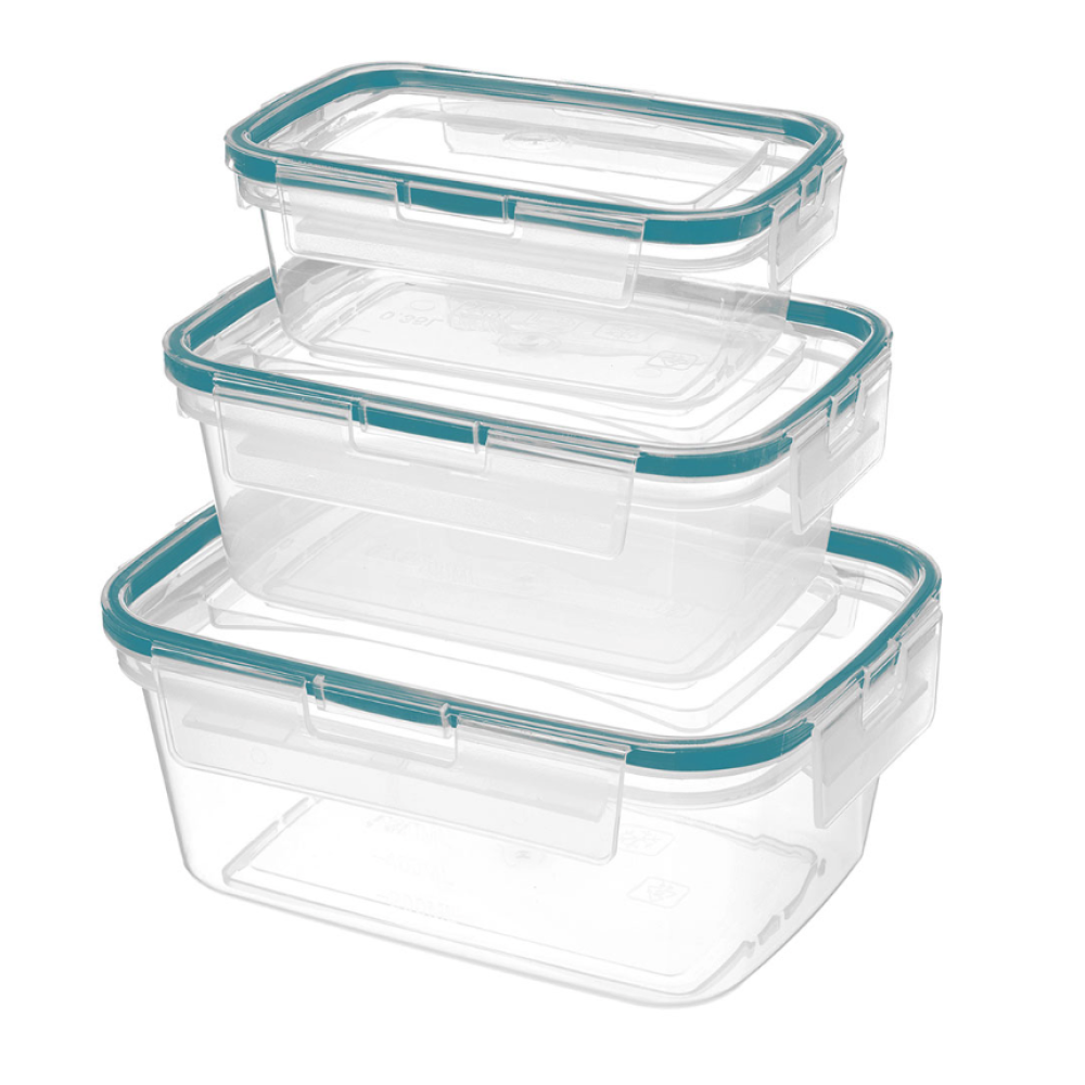 Комплект контейнеров для продуктов герметичных прямоугольных 0,35 л + 0,75 л + 1,3 л с защелками (бесцветный) 221104518/02