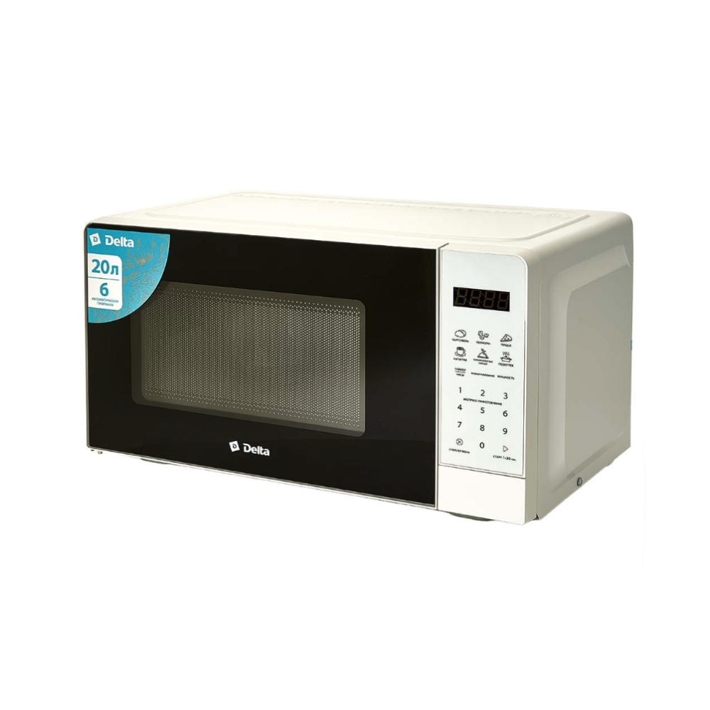 Микроволновая печь 700 Вт, 20 л DELTA DL-90L20 белая, LED-дисплей, 6 автопрограмм