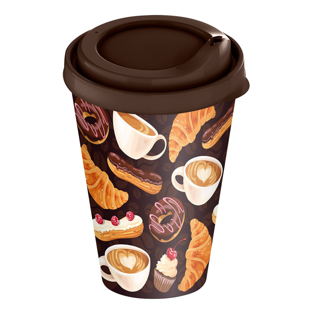 Стакан с крышкой 420 мл с декором "Кофейная пауза" (темно-коричневый) 223133324/01