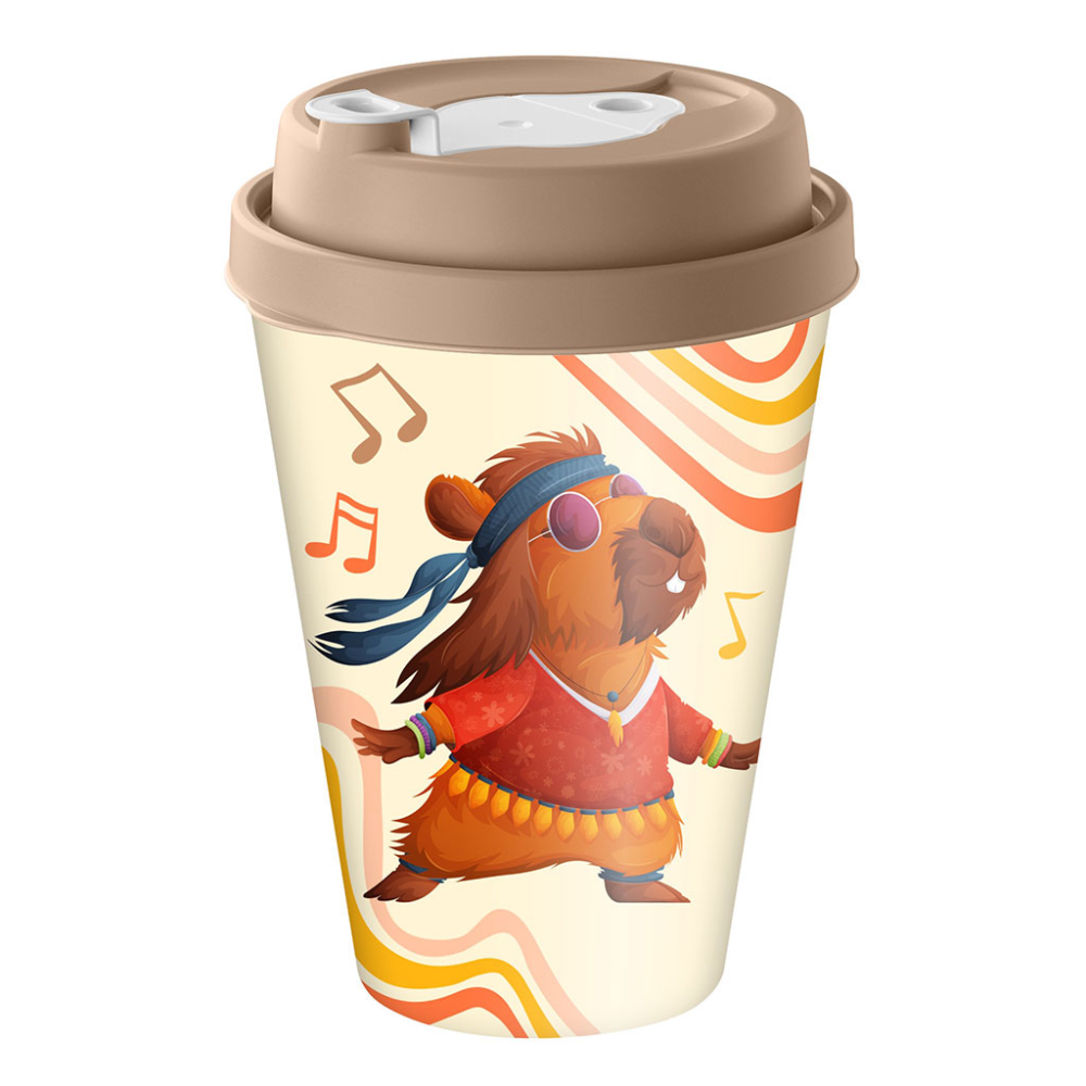 Стакан с крышкой 420 мл с декором с клапаном "Капибары" (бежевый) 223107027/01