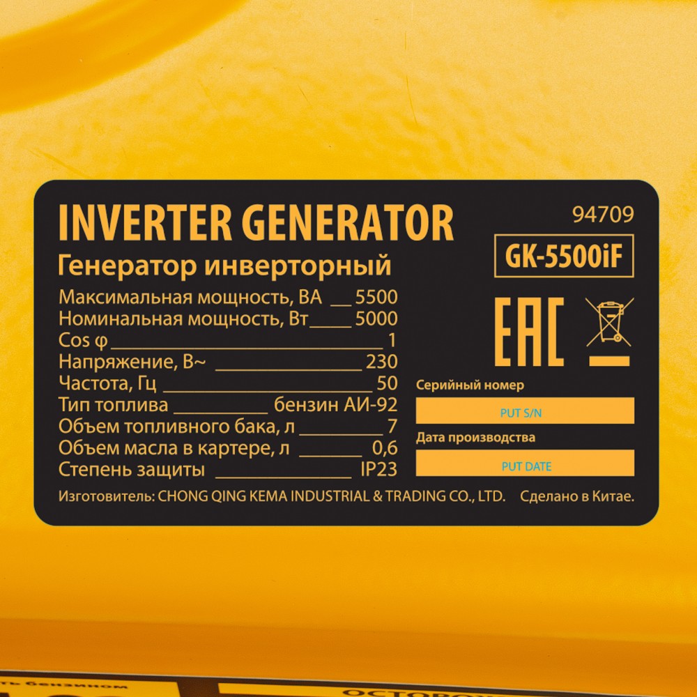 - Надежная изоляция внутренних компонентов — генератору присвоена степень защиты IP23, что означает устойчивость к попаданию брызг воды и твердых частиц размером от 12,5 мм.