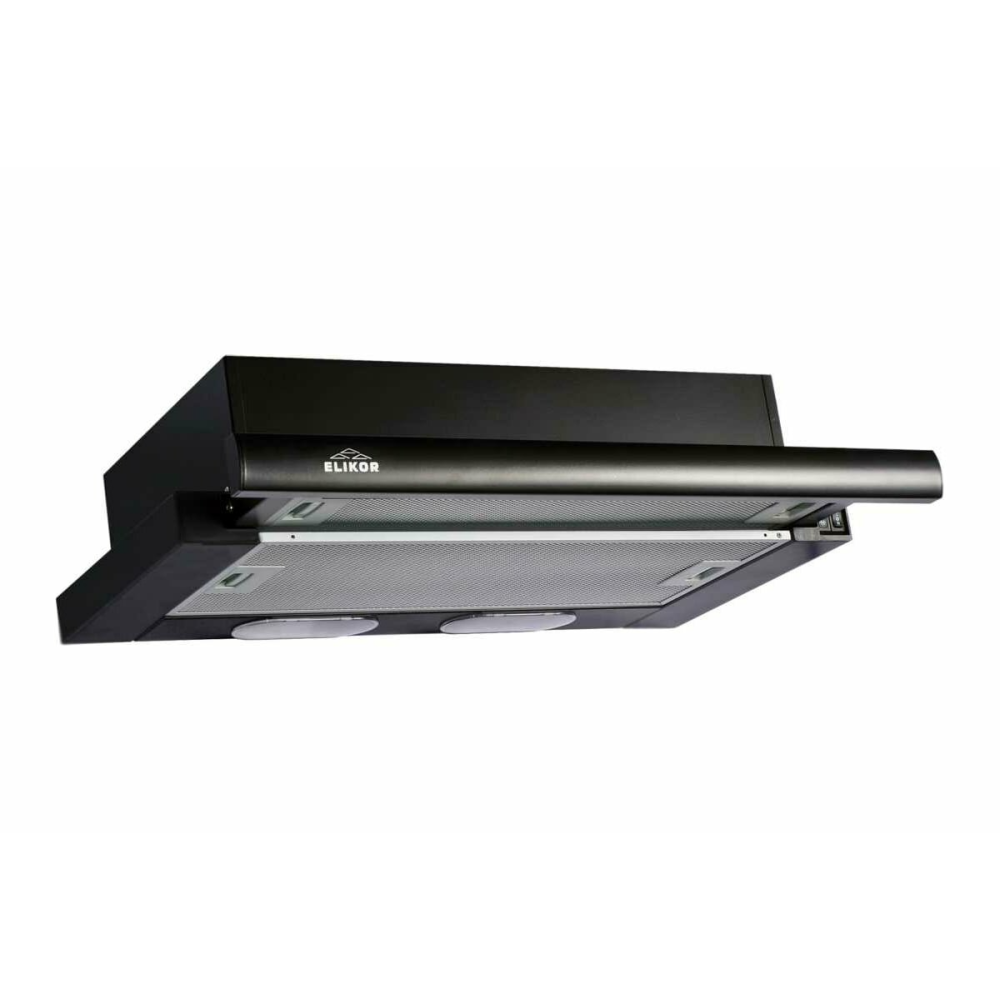 Кухонная вытяжка ELIKOR Интегра 60П-400-В2Л «Чёрный/чёрный» — встраиваемая модель, корпус изготовлен из нержавеющей стали, а выдвижная панель оформлена в чёрном цвете.
