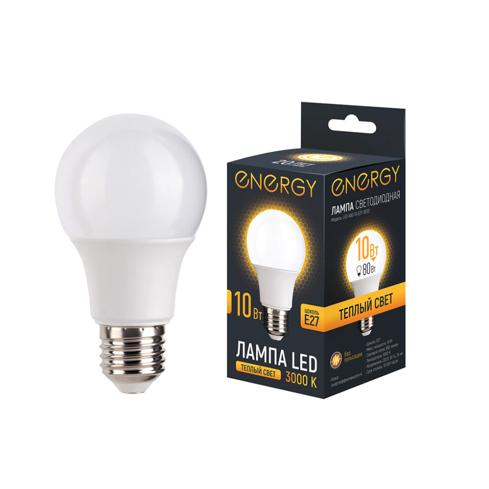 - Лампа светодиодная Energy LED А60-10-E27-3000