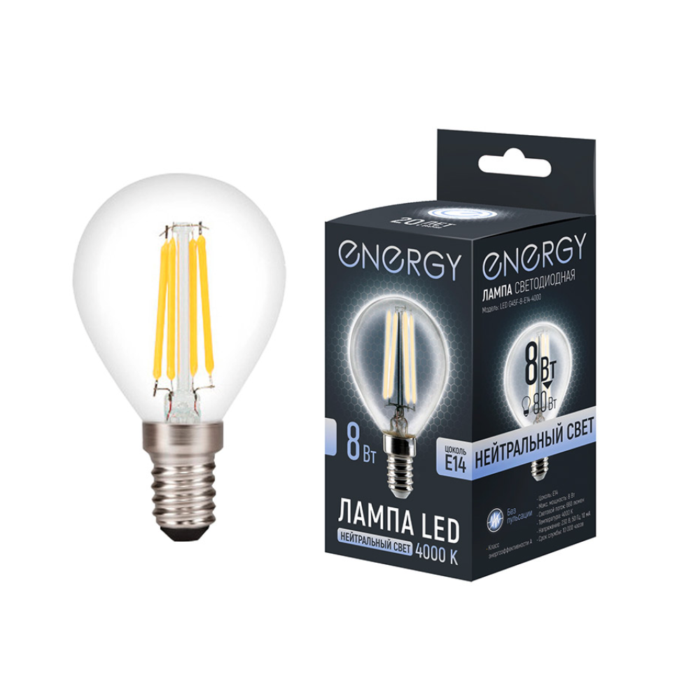 - Лампа светодиодная Energy LED G45F-8-E14-4000 Филаментные (нити)