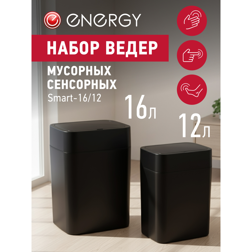 Набор сенсорных мусорных ведер Energy Smart 16/12 чер. 111285-SK