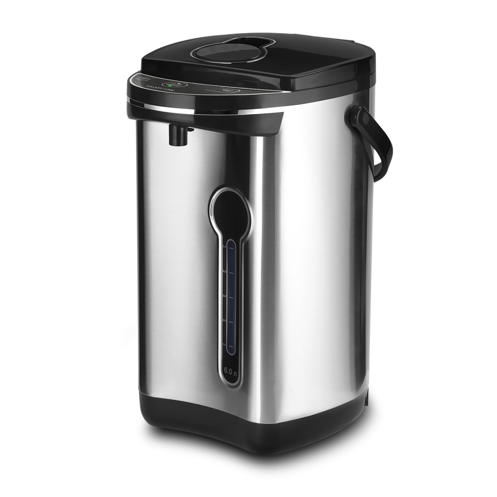 Вместительная колба на 6 литров избавит от частого долива воды, а высокая мощность обеспечит быстрый нагрев. Прибор сохраняет тепло в течение длительного времени, а при необходимости — снова доводит воду до кипения одним нажатием.