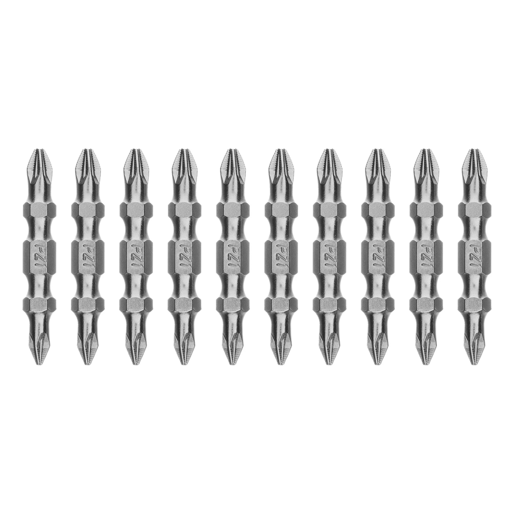 Двухсторонняя бита Gross 112010 входит в набор из 10 насадок PZ2-PZ1 х 45 мм, изготовленных из стали S2 и предназначенных для закручивания/откручивания саморезов по дереву и другого резьбового крепежа с помощью шуруповерта. Насадки с двумя рабочими профилями Pozidriv подходят как для бытового, так и для профессионального использования. Дополнительные ребра в шлице обеспечивают максимально плотное прилегание биты к шляпке метиза.