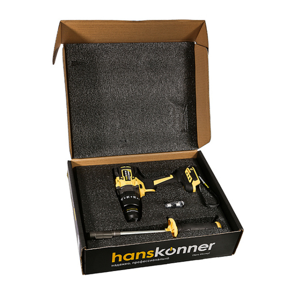 Аккумуляторная ударная дрель-шуруповерт Hanskonner HCD18165BL подходит для любых работ, в том числе в стесненных условиях и труднодоступных местах без снижения производительности и потери качества работ.