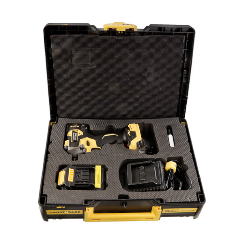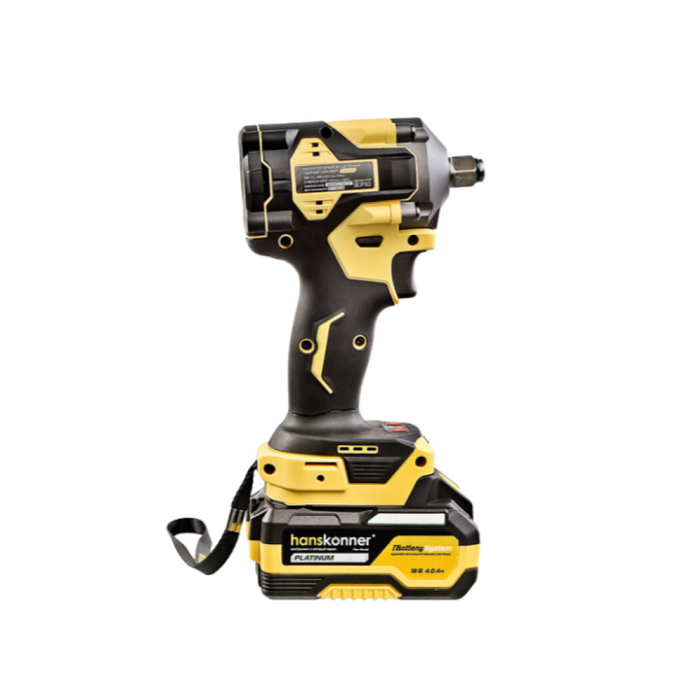 Hanskonner HCD20420BLС – аккумуляторный 18 В, ударный гайковерт с наружным квадратом 1/2″ и возможностью установки оснастки под шестигранник 1/4″ – является частью системы 1BatterySystem, обеспечивающей совместимость одного и того же аккумулятора с целым рядом наименований инструмента. Модель обладает максимально сбалансированной компоновкой: небольшие размеры корпуса и рукояти позволяют эффективное использование в условиях с затрудненным доступом, а нейтральный центр тяжести, и обилие прорезиненных противоскользящих поверхностей способствуют надежному хвату, и лучшему контролю. Гайковерт оснащен 18 В бесщеточным двигателем, характеризующимся на 30% лучшей производительностью в сравнении с коллекторными аналогами. Кроме того, бесщеточный двигатель отлично справляется с кратковременными перегрузками и не склонен к перегреву. Модель Hanskonner HCD20420BLС имеет два режима настройки крутящего момента: 280 Н м и 420 Н м – пользователь выбирает нужный, исходя из поставленных задач. Функция деликатного откручивания SoftMode обеспечивает максимально аккуратное откручивание прикипевшего крепежа, исключая его повреждение. К особенностям Hanskonner HCD20420BLC стоит отнести электронный тормоз двигателя, эффективную LED-подсветку рабочей зоны WorkingLight с блоком коллиматорных линз, создающих направленный симметричный луч, а также индикатор остаточного заряда аккумулятора PowerCheck. Дополнительному комфорту использования способствует специальная зацепная скоба крепления на пояс и страховочный ремешок на руку. Гайковерт штатно комплектуется литий-ионным (Li-ion) аккумулятором емкостью 4.0 А ч с возможностью подзарядки от него через USB выход сторонних гаджетов, импульсным зарядным устройством, USB LED-фонарем, запитываемым от АКБ. Прочный кейс единой системы хранения инструмента HANSTORAGE гарантирует сохранность устройства и аксессуаров в процессе транспортировки.