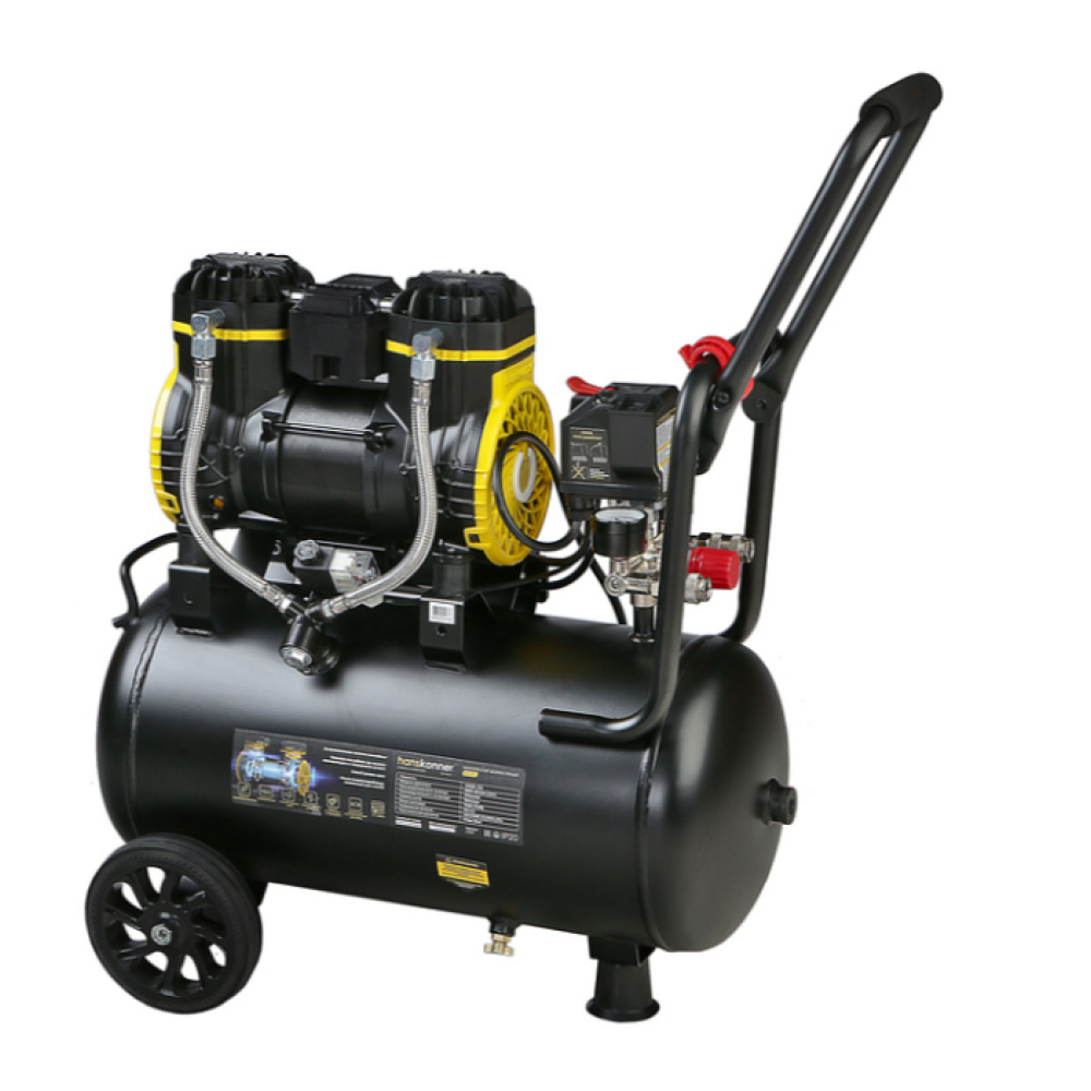 Hanskonner HAC241 - поршневой безмасляный компрессор нового поколения. Мощность данной модели составляет 1450Вт, производительность 240 л/мин, честный объем ресивера 24л., с максимальным давлением 8 бар.