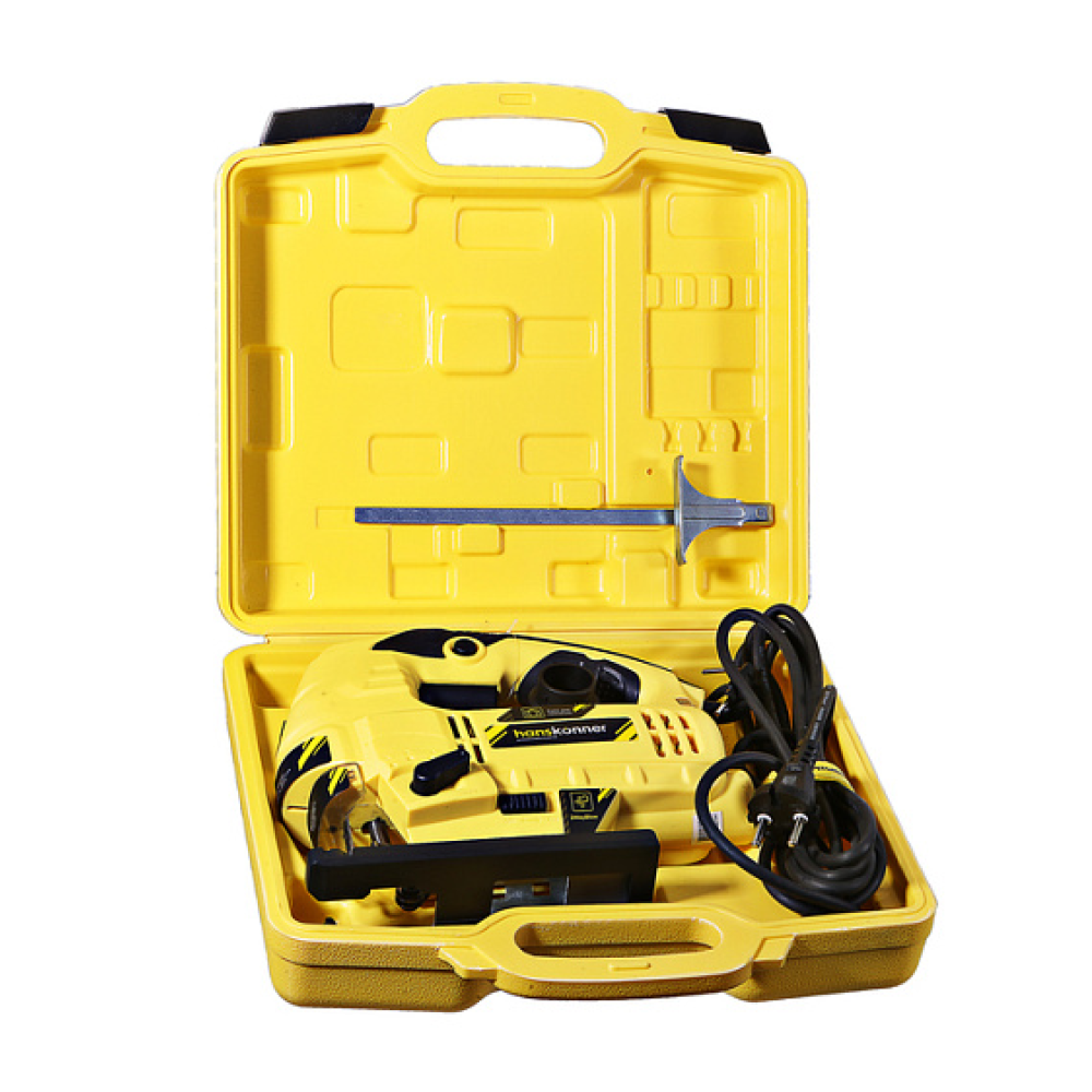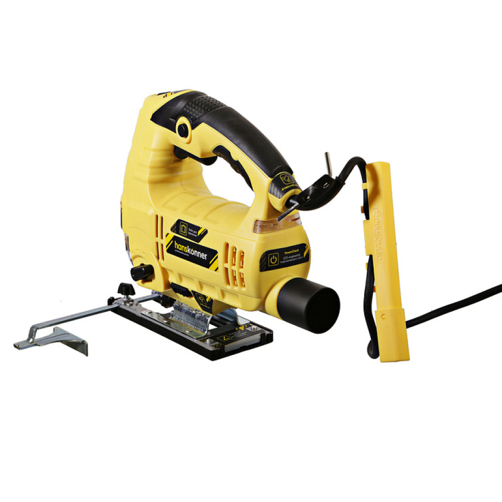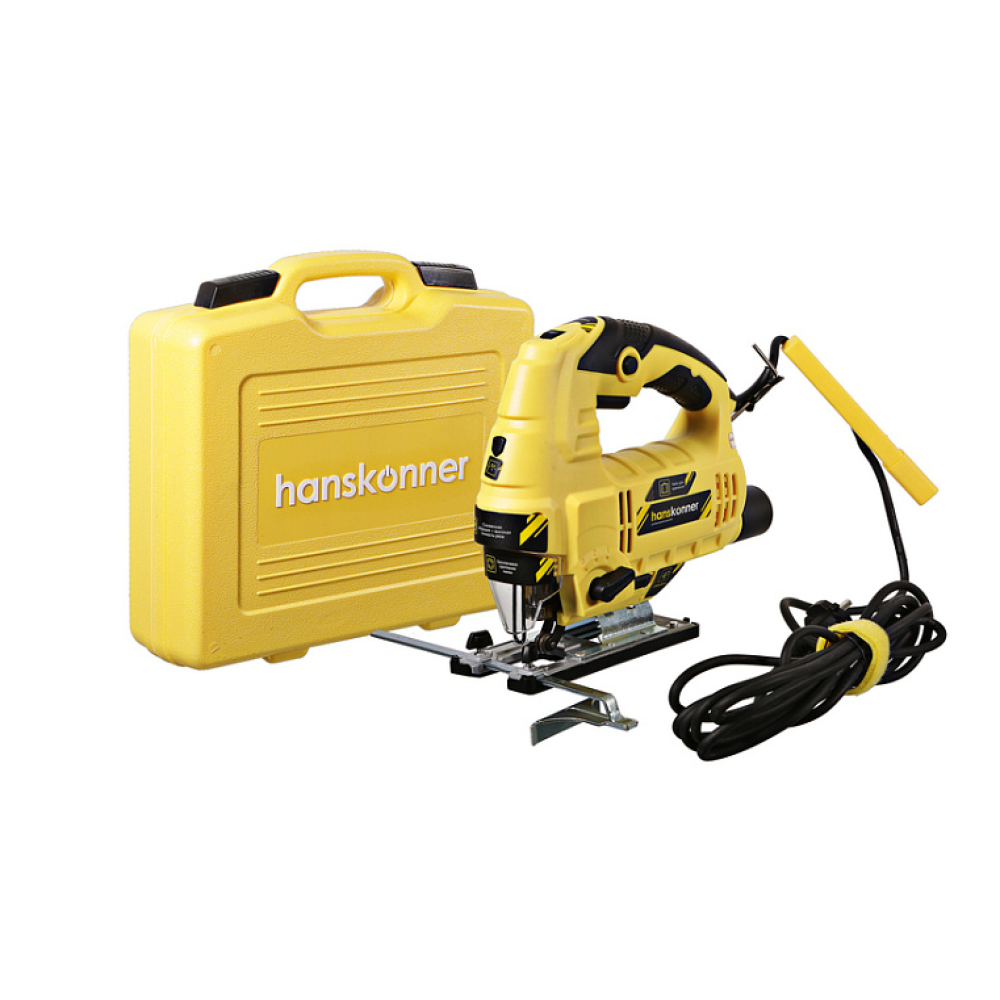Hanskonner HJS0811LPE – универсальный и производительный электрический лобзик. Характеризуется оптимальными массогабаритными показателями и выверенной эргономикой – модель надежна в хвате и отлично контролируется. Лобзик оснащен 860 Вт электромотором и мощной механической частью – позволяет выполнять пропилы до 120 мм в древесине, и до 12 мм в металле. Возможность точной настройки инструмента применимо к конкретному материалу обеспечивают электронная система регулировки ходов штока, а также, функция маятникового хода с четырьмя режимами – с помощью специального переключателя пользователь выбирает оптимальный режим работы с упором на максимальную производительность, либо максимальное качество реза с наименьшим количеством сколов. Модель получила усиленную литую силуминовую платформу, стойкую к деформациям и механическим повреждениям. Для удобства пользователя, на Hanskonner HJS0811LPE установлен механизм безынструментальной замены полотна, за счет чего, смена оснастки производится максимально быстро и просто, без необходимости применения специального ключа. Эффективный выдув опилок из рабочей зоны обеспечивает функция 2WAYBLOW. При необходимости возможно подключение строительного пылесоса. LED подсветка рабочей зоны, дает возможность полноценно использовать лобзик даже в условиях недостаточного освещения. Мягкий, резиновый, четырехметровый сетевой кабель 4VelcroRubber обеспечивает значительную рабочую площадь до 50 м2, без применения дополнительного удлинителя, а также сохраняет гибкость и эластичность при низких температурах. Наличие специального хомута-липучки позволяет с легкостью зафиксировать кабель в собранном положении. Прочный пластиковый кейс гарантирует сохранность устройства и аксессуаров в процессе транспортировки.