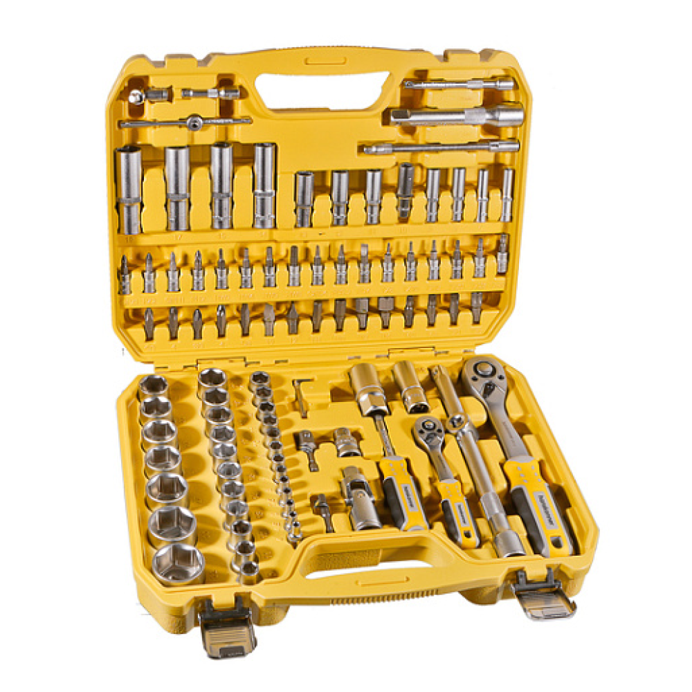 Набор инструментов hanskonner с присоединительными квадратами 1/2" и 1/4" укомплектован высококачественными 94 предметами, предназначенными для ремонта и обслуживания автомобилей и других транспортных средств. Является незаменимым помощником для работы в гараже, автомастерской или сервисном центре.