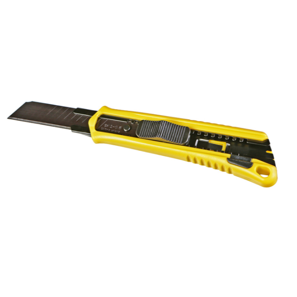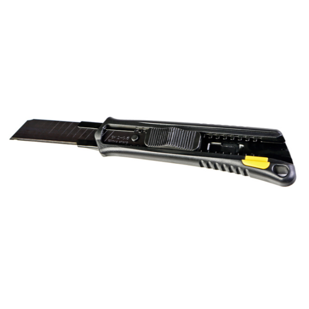 Строительные ножи QuickReload3 (система быстрой замены лезвия) подходят для работ с повышенными нагрузками, требующими особой точности и быстрой замены отработанного лезвия. Благодаря сверхпрочной металлической направляющей достигается улучшенная устойчивость конструкции при давлении на инструмент. Лёгкий и прочный корпус из высококлассного пластика удобно лежит в руке, а текстурированная поверхность с упором под большой палец обеспечивает полный контроль инструмента. Лезвие из высококачественной стали SK2 c трёхгранной заточкой и дополнительной обработкой лазером служит в 5 раз дольше стандартного. Уникальный запатентованный механизм быстрой блокировки/разблокировки направляющей позволит легко заменить лезвие и максимально оперативно вернуться к работе.