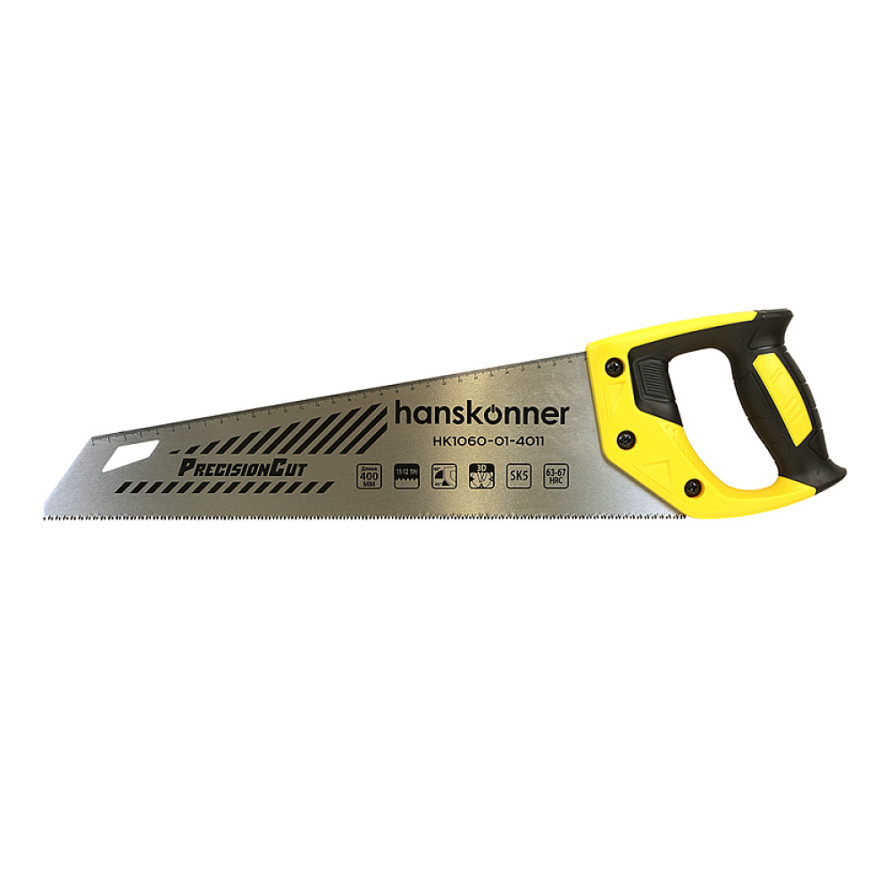 Ножовка по дереву Hanskonner HK1060-01-4011. Сталь SK5 держит заточку до 3-х раз дольше обычной, а так же поозволяет добиться на 15% большей закалки зубьев (63-67HRC) без потери прочности.