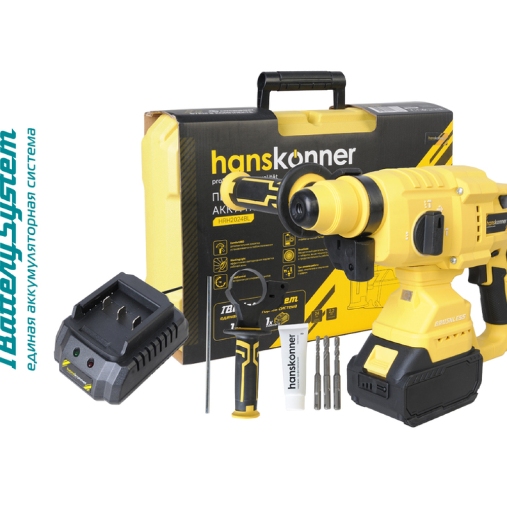 Аккумуляторный перфоратор HANSKONNER HRH2024BL предназначен для безударного и ударного сверления отверстий в различных материалах (при использовании соответствующих сверл и буров), а также для работы в режиме долота (при установке соответствующего инструмента).