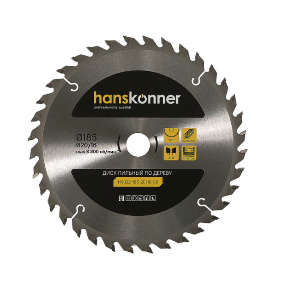 Диаметр диска185 | ТипПильный диск по дереву | ПроизводительHanskonner |