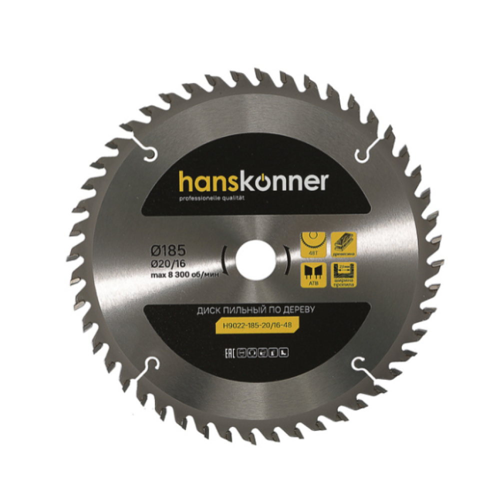 Диаметр диска185 | ТипПильный диск по дереву | ПроизводительHanskonner |