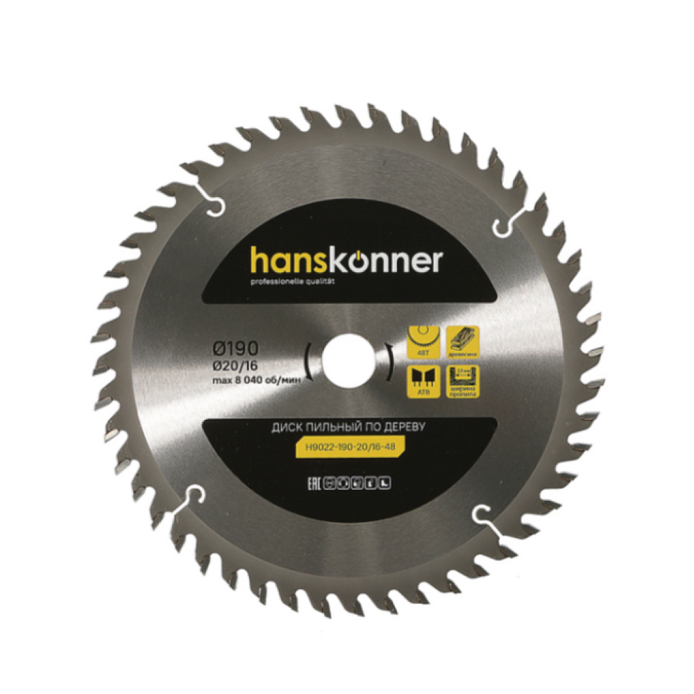 Диаметр диска190 | ТипПильный диск по дереву | ПроизводительHanskonner |