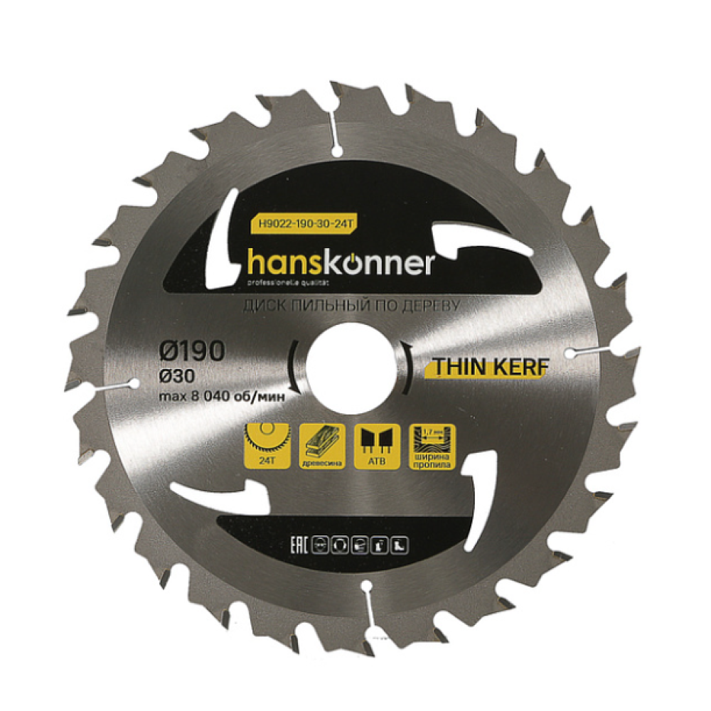 Диаметр диска190 | ТипПильный диск по дереву | ПроизводительHanskonner |