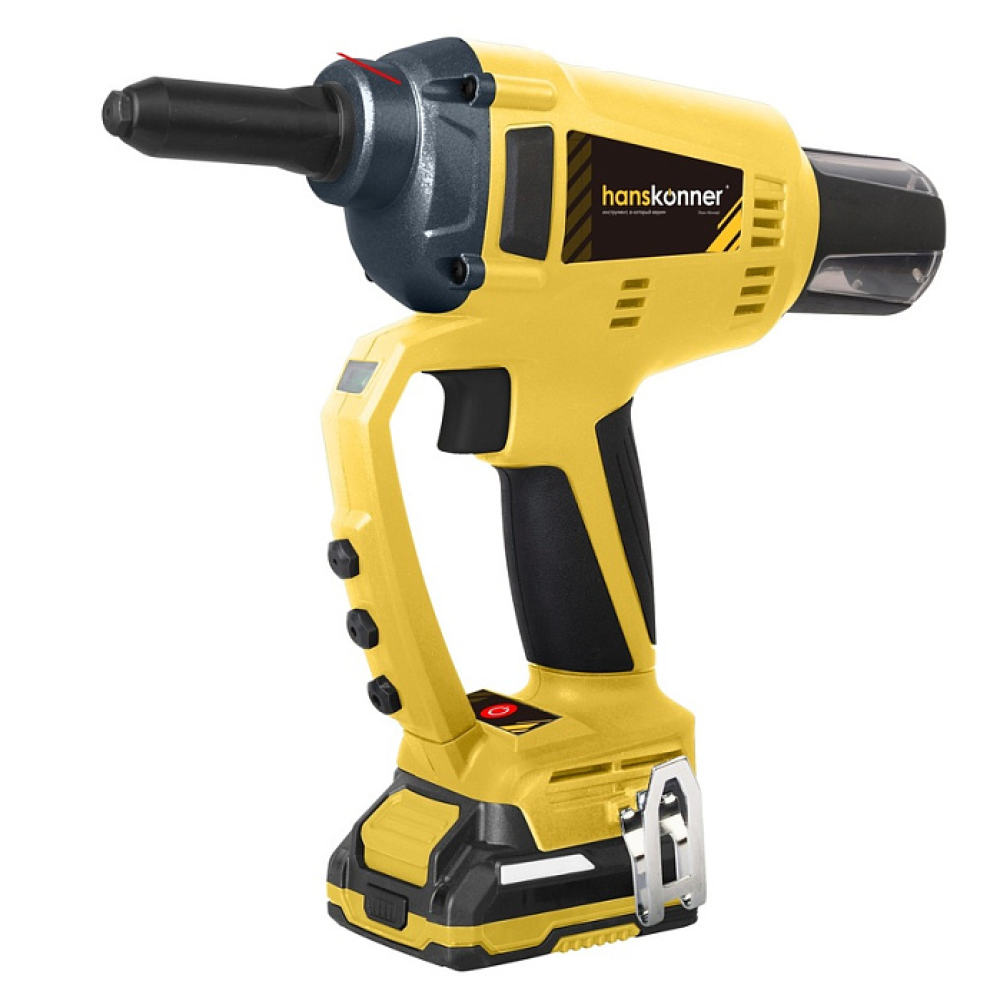 Аккумуляторный заклёпочный пистолет Hanskonner HRG18PRO является частью системы 1BatterySystem 18B и предназначен для установки алюминиевых, стальных (в т.ч. нерж.) и медных вытяжных заклепок диаметром 2.4-4.8 мм. Высокая производительность и энергоэффективность модели обеспечивается за счет наличия бесщеточного двигателя.