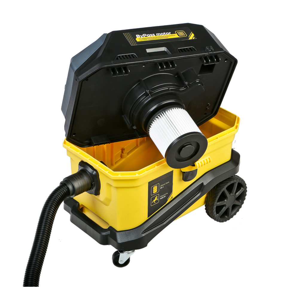 Помимо традиционного режима всасывания, конструкцией предусмотрен режим выдува воздуха – он идеально подходит для экспресс-очистки рабочих столов и верстаков, а также очистки штроб и т д. Также, пылесос может применяться и для сбора негорючих жидкостей. Благодаря мощной системе фильтрации, с применением высокоэффективного HEPA фильтра, предотвращается попадание пыли и абразивных частиц в двигатель.