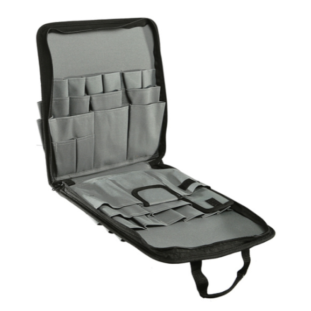 Съёмный органайзер во внутреннем отделе сумки помогает зонировать пространство для инструмента, а также сам снабжен карманами. Возможность его извлечения позволяет полностью контролировать эргономику хранения инструмента.