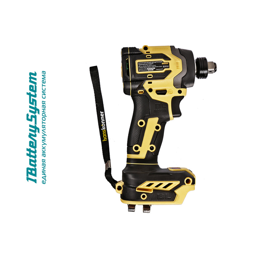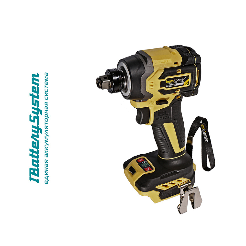Hanskonner HCD20280BLW это 18В аккумуляторные ударные винтоверт и гайковерт в одном инструменте. Двойной функционал HCD20280BLW обеспечен благодяря предустановленному патрону с типом гнезда под квадрат 1/2" с внутренним HEX 1/4". Инструмент является частью системы 1BatterySystem, обеспечивающей совместимость одного и того же аккумулятора с целым рядом наименований инструмента. Модель обладает максимально сбалансированной компоновкой: небольшие размеры корпуса и рукояти позволяют эффективное использование в условиях с затрудненным доступом, а нейтральный центр тяжести, и обилие прорезиненных противоскользящих поверхностей способствуют надежному хвату, и лучшему контролю. Винтоверт оснащен 18 В бесщеточным двигателем, характеризующимся на 30% лучшей производительностью в сравнении с коллекторными аналогами. Кроме того, бесщеточный двигатель отлично справляется с кратковременными перегрузками и не склонен к перегреву. Благодаря применению мощного планетарного механизма, Hanskonner HCD20280BLW уверенно демонстрирует высокие показатели крутящего момента (до 280 Н м), что позволяет работать с крепежом большой длины и диаметра. Винтоверт имеет четыре режима настройки момента затяжки: 60 Н м, 120 Н м, 180 Н м, 280 Н м – пользователь выбирает нужный, исходя из конкретного материала и крепежа. Модель оснащена функцией AutoStop, плавно останавливающей вал шпинделя сразу после откручивания крепежа. К особенностям Hanskonner HCD20280BLW стоит отнести эффективную LED-подсветку рабочей зоны WorkingLight с блоком коллиматорных линз, создающих направленный симметричный луч, а также индикатор остаточного заряда аккумулятора PowerCheck. Дополнительному комфорту использования способствуют специальная зацепная скоба крепления на пояс.